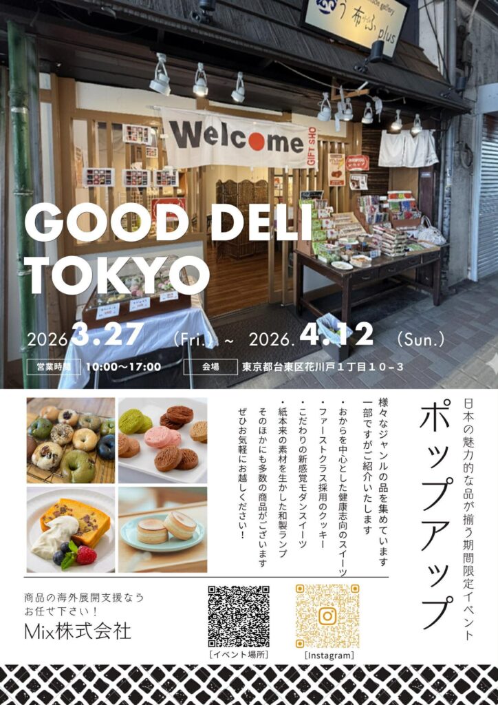 - 会場: Good Deli Tokyo・東京都台東区花川戸1-10-3 (Mix株式会社 期間限定ショップ内)